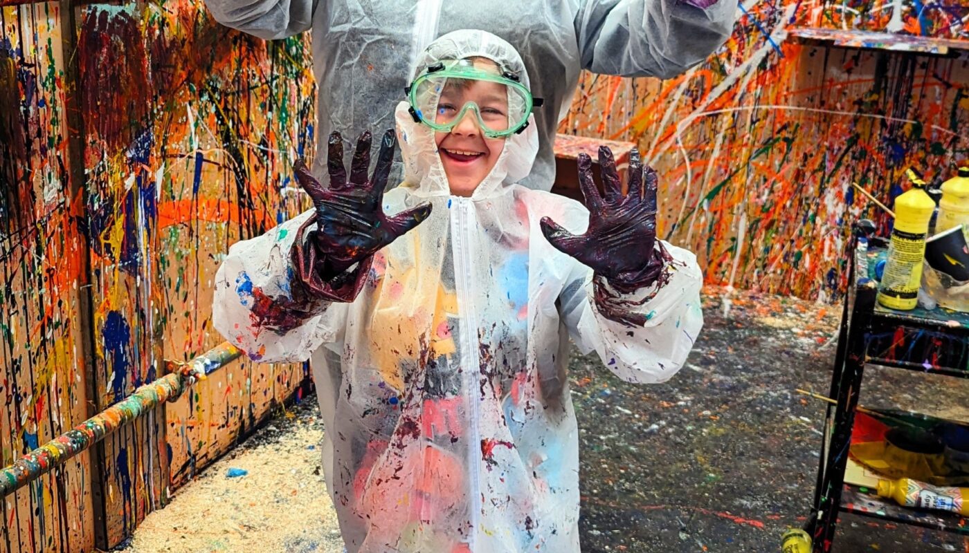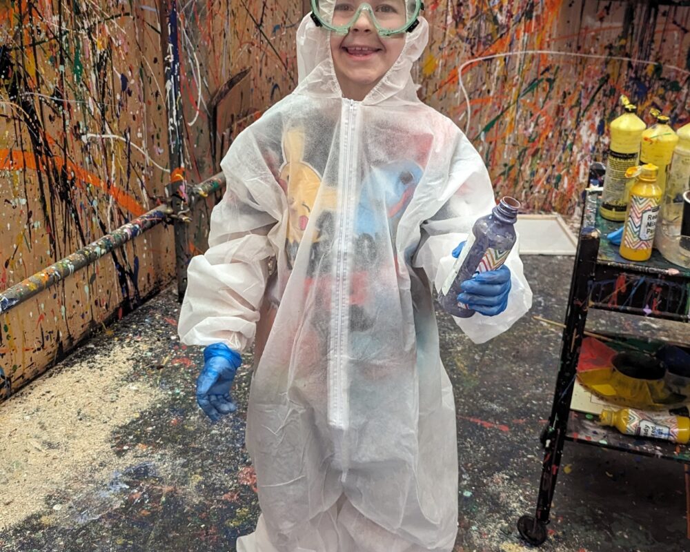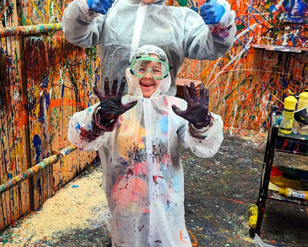 Only £30 per person for the whole hour bring as many family members and friends as you like as our Paint splatter room can have up to 8 people at once! All our paint is water based so don’t worry if you get covered or go a bit crazy it comes off very easily.